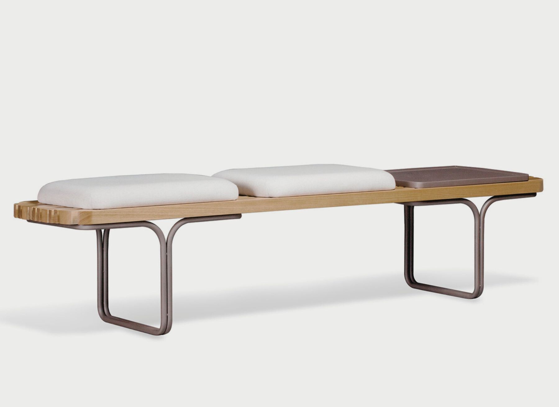 Aço Carbono pintado ou inox polido. Madeira Cumaru natural. Opção assento estofado.