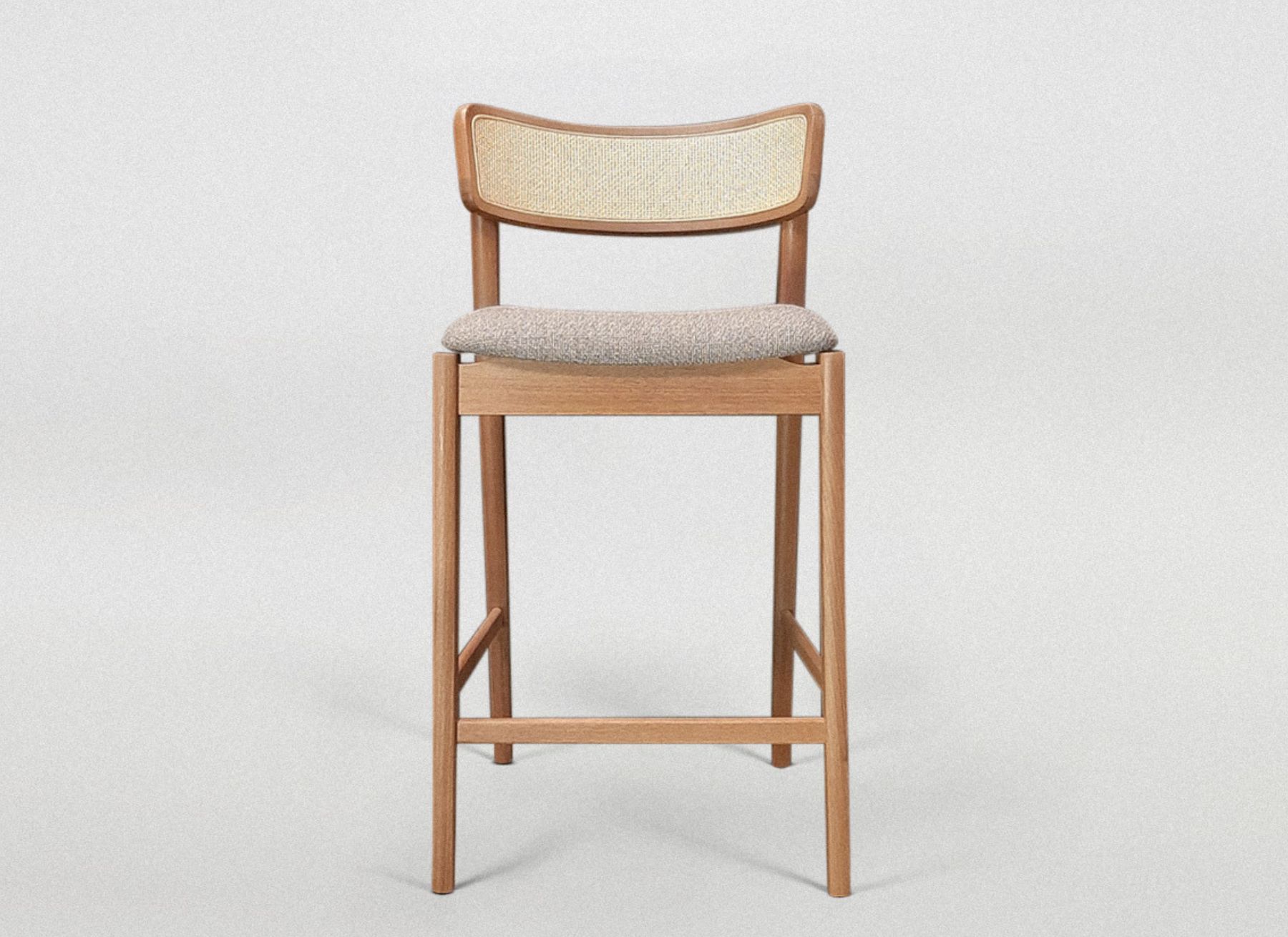 Estrutura em madeira maciça. Encosto em palha natural com assento estofado.