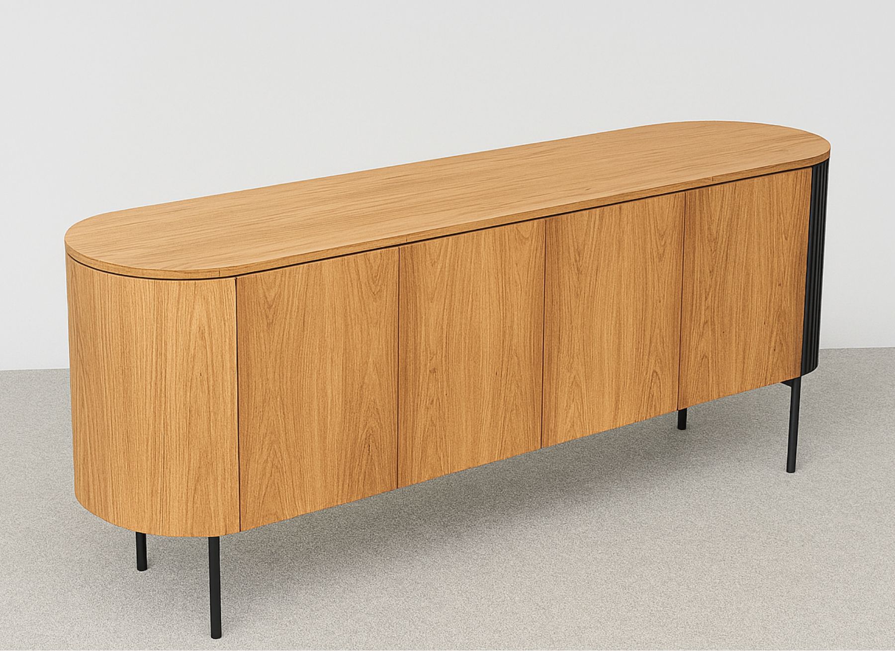 Estrutura laminada ou pintada. Lateral em madeira ripada.