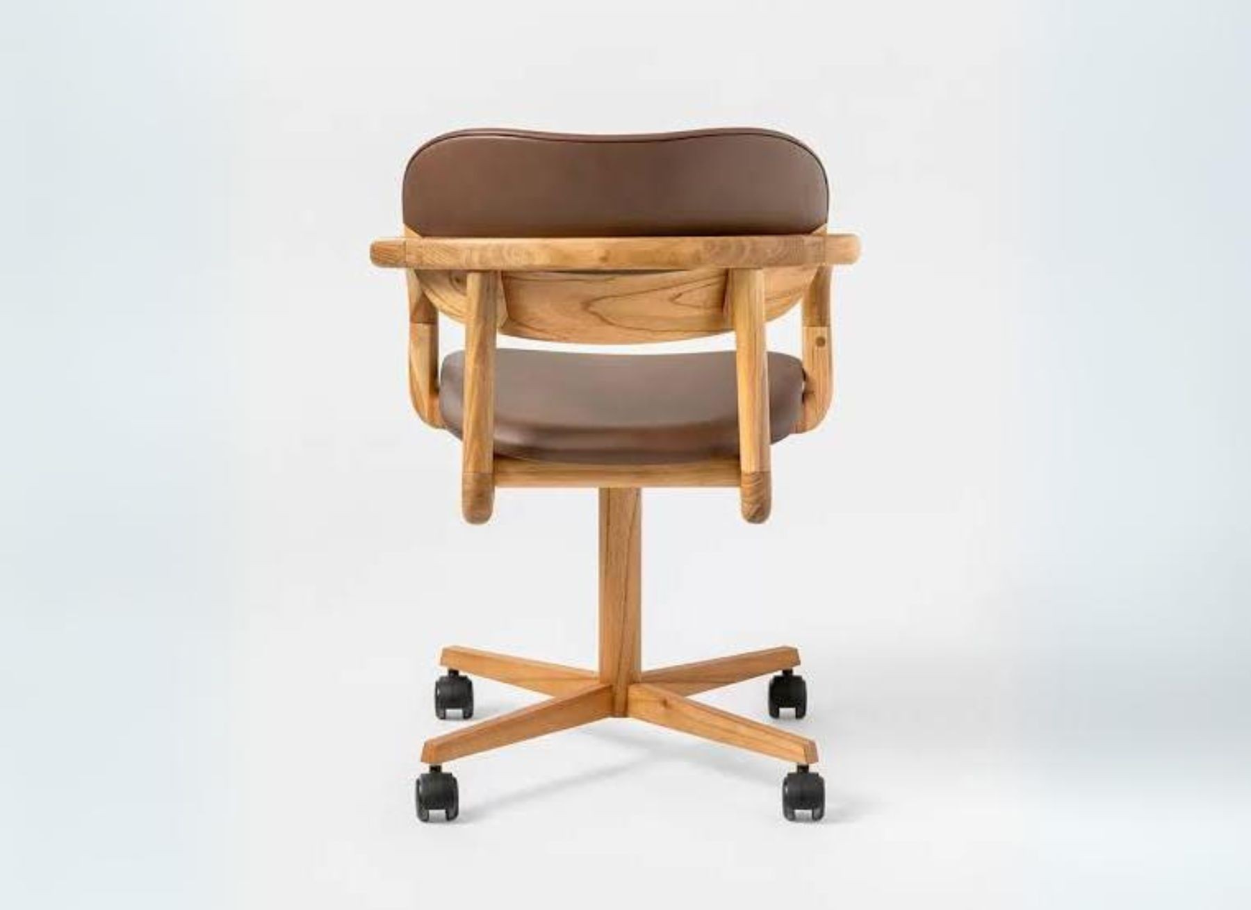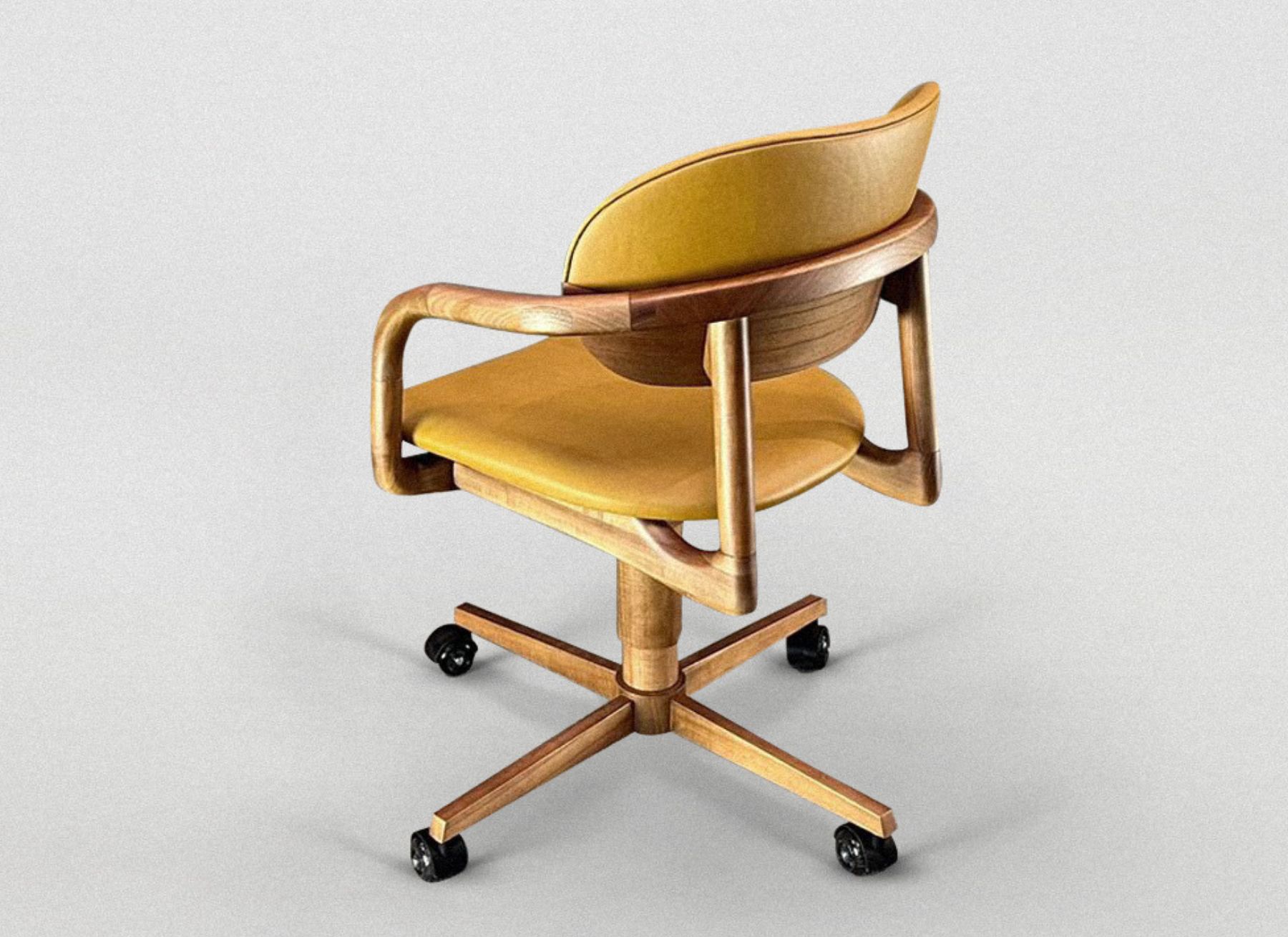 Seu espaldar bipartido remete a um grão de café, revestido em madeira laminada e couro. De estrutura torneada, a cadeira Grão se destaca pelo conforto inconfundível de uma cadeira assinada por Rejane Carvalho Leite. Assento e espaldar anatômicos.