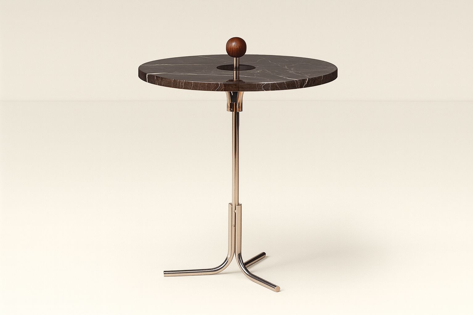 Tampo em madeira laminada ou pintada. Base em metal.