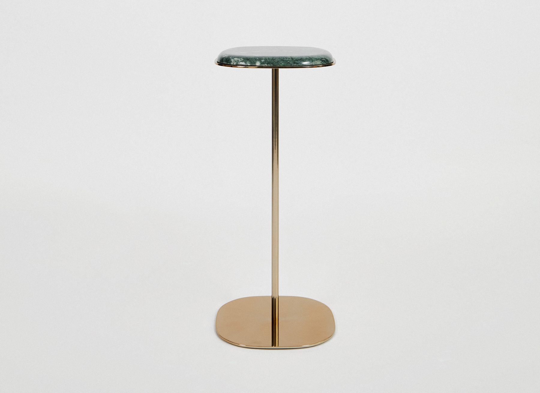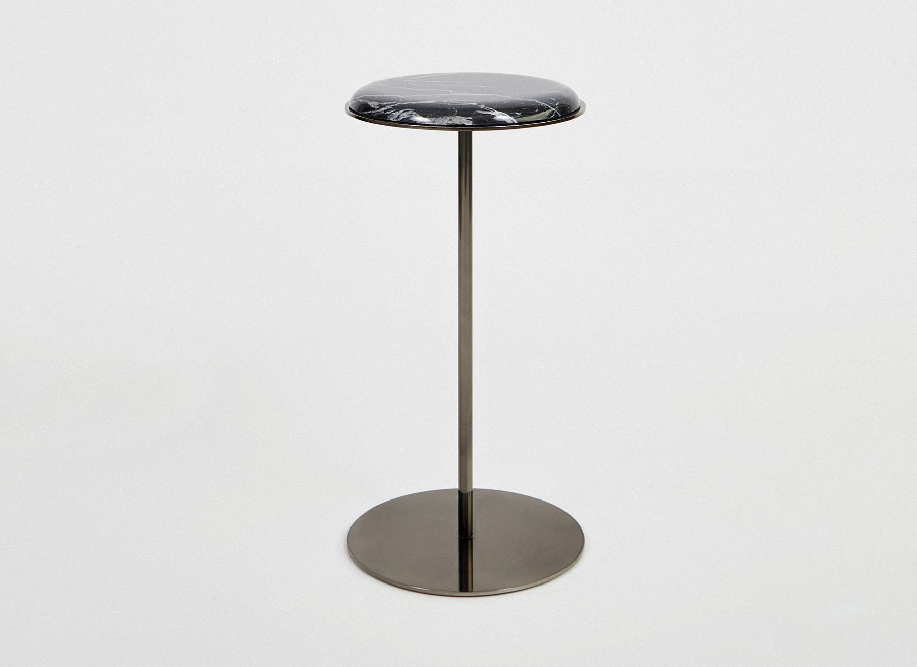 Base e tampo em metal Onix, Golden ou Rosé. Opção tampo em mármore verde Guatemala, branco Carrara ou Nero Marquina.