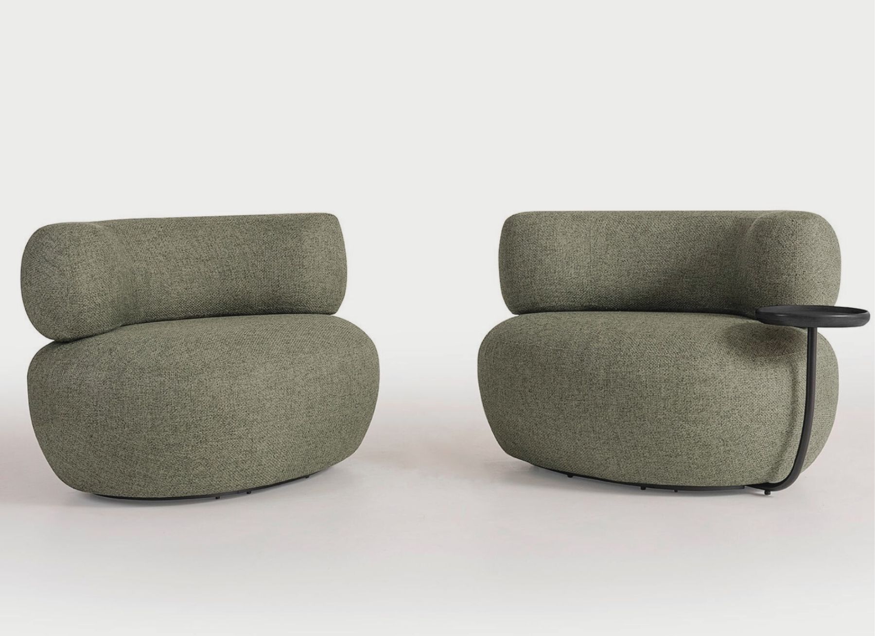Assento e encosto estofados. Mesa lateral opcional.